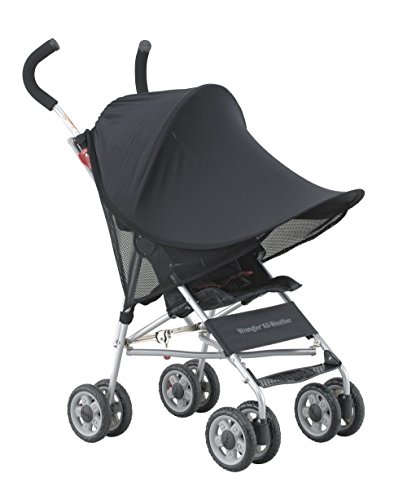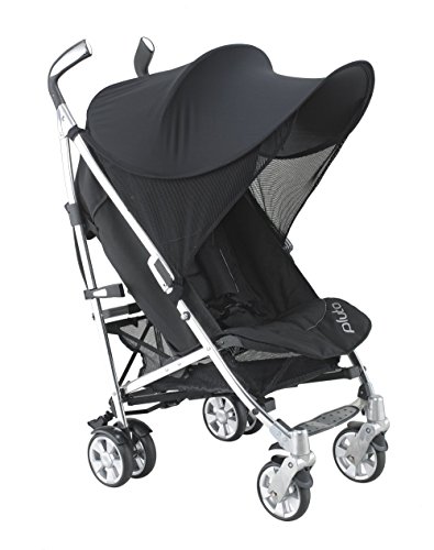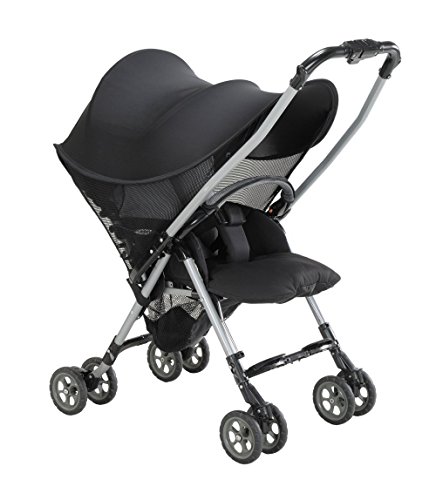 ストレッチ素材の大きな日よけで上からはもちろん、横や前からの日差しもさえぎるたっぷりサイズ。 取り付け位置によっては赤ちゃんをすっぽりガードでき、両対面状態にも取り付け可能。移動のたびに角度調整する必要がなく便利。