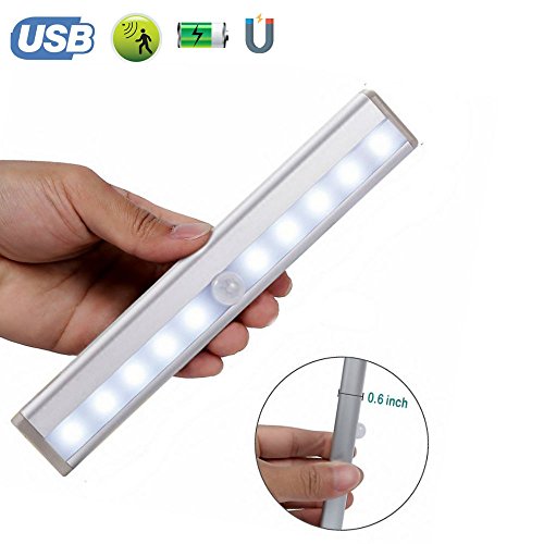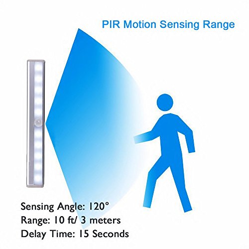 TKSTAR 10led赤外線モーションセンサーライト、DIYスティックオンワイヤレスワードローブ/階段/ステップライト、夜間赤外線Humanボディライトバーwith磁気ストリップ JUNEO