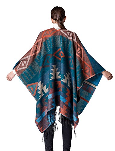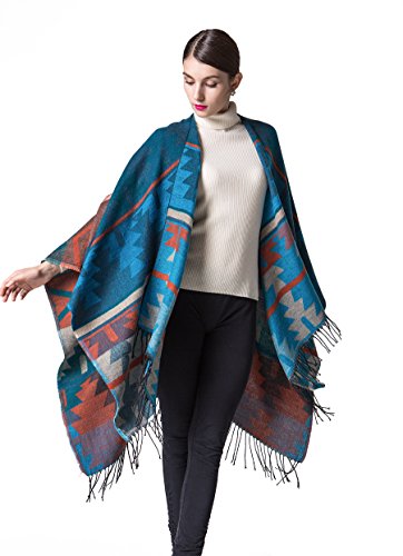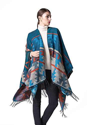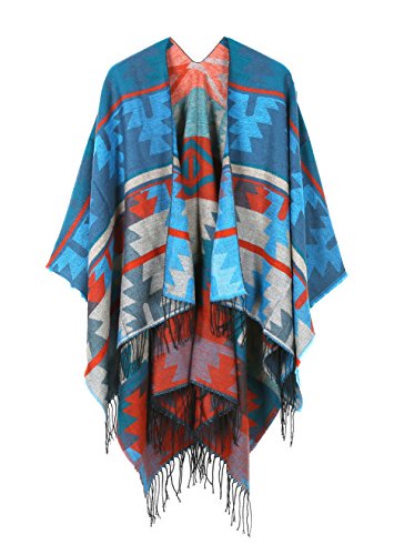 JURUAA レディース ポンチョ フリンジ カシミア フリース ショール ラップコート US サイズ: M カラー: ブルー