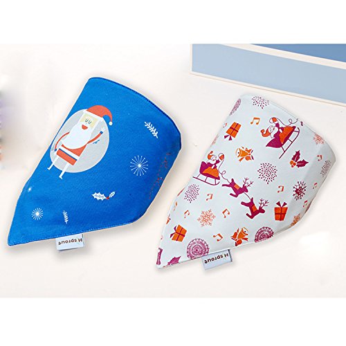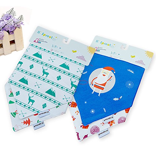 JUSH キッズ バンダナビブ よだれかけ 2層タイプ スナッフ式 コットン100% 2点セット 調整可能 (クリスマス(2点セット))