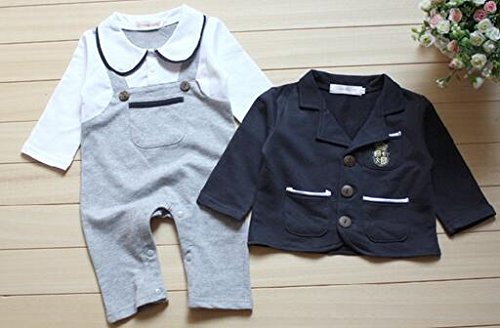 「JUST style」 ベビー 用 ブレザー ロンパース セット オーバーオール風 カジュアル 子供服 全2カラー (95, ネイビー)