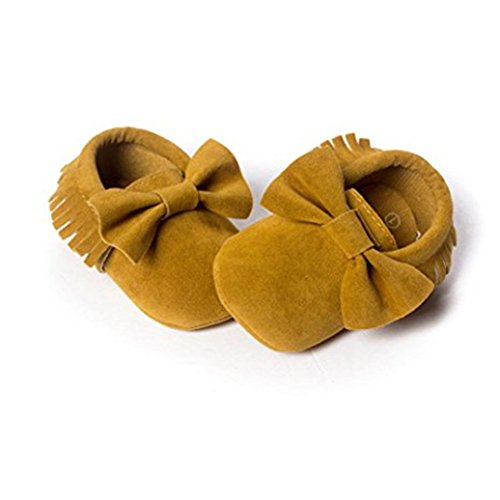 JySベビー男の子女の子タッセルリボンソフトソールPUレザーローファーモカシンスニーカー靴 US サイズ: 3-6 Month カラー: イエロー