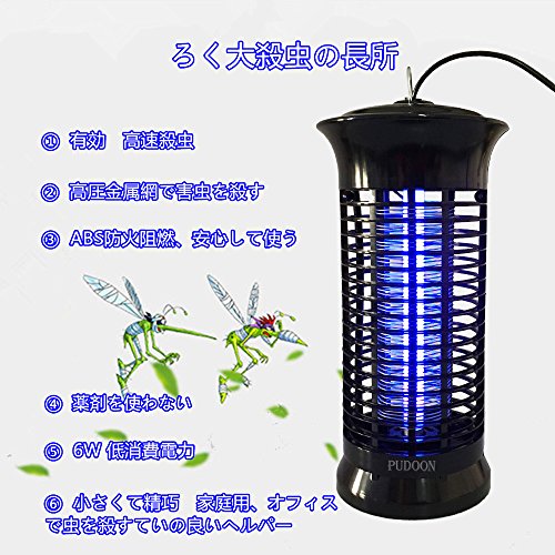 PUDOON 殺虫ライト 電撃殺虫器 電気 蚊取り器 電撃殺虫灯 UV光源吸引式 殺虫器 ケーブル 2M 虫退治 誘蛾灯 バエ 対策 置くと掛ける両用 薬剤不使用 赤ちゃんやペットにも安心 無害 屋内専用 6Wタイプ 約9坪(30平方メートル)の有効面積居間 台所 寝室 飲食店 店舗 オフィスや事務所などに適用 日本語説明書付 (ブラック)