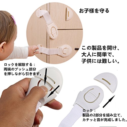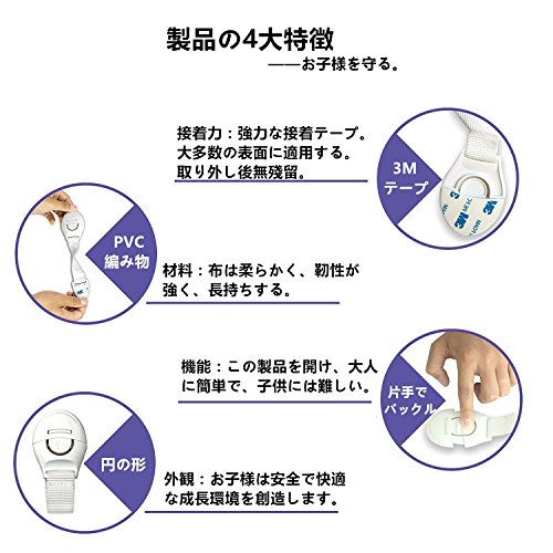- 【超簡単な取り付け】大人にとって操作が容易で、便利に片手で開け、赤ちゃんにとっては開けにくい仕組みになっています。組み立てが簡単ですぐ使え、使い勝手が非常に良いですもちろん、強力な接着テープ。大多数の表面に適用する。取り外し後無殘留。地震対策に使うのもアリですよね!