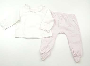 実際のサイズ表記は18Mです。襟元や袖など小さなシミがありますがまだまだお使いいただけます。おまけに同ブランドのレギンス(全体的に毛玉感があり)付き。