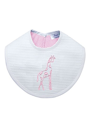 - Jacaranda Living Waffle Weave Bib Pink Dot Giraffe, 11 x 9.5 x 0.5, White