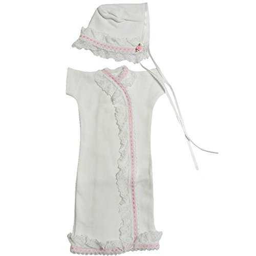【未熟児】【低出生体重児】【早産児】【NICU】用 半袖セレモニードレス ボンネット付き ピンクレース (1360-2700g)