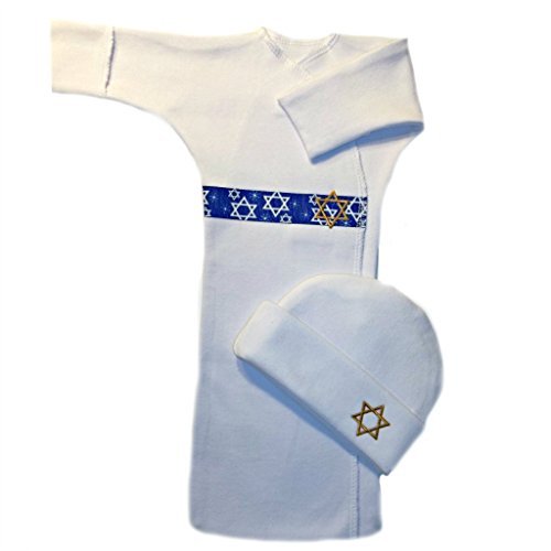 美しい。100ソフトコットンインターロックニット。オン/オフのためのホワイト長袖ガウンで面ファスナーをフロントアクセスが追加されました。ダークブルーのトリムとダビデの星間のフロントに金のダビデの星のアップリケ付き。ホワイトキャップハットゴールドのSTARが含まれています。4つのマキシミリアン・ニク早産と新生児サイズがあります。Micro preemieのセッティング赤ちゃん0 – 3ポンド; preemie 0 – 3ヶ月3 – 6ポンドS新生児5 – 8ポンド、12ポンドにオーダーするときは選択してください。ジャッキー・'s preemie Pride , INC。によって。どんな祝祭日や任意の日だった