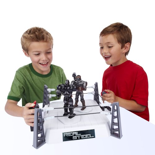 Ring set includes: *1x Atom and 1x Zeus Figure *5x Corner posts2 Ring Ropes *1x Ring Base *2x Controllers *Punch and move with motion control joystick *3 hits to win Detachable right and left arm heads pop up when Knocked Out(K.O.) *Ages 4+ *Officially licensed *Brand new in manufacturer packaging The brawling won't stop when you get your Real Steel WRB Battle Champions Fighting Figures together and get in the Main Event Ring to relive the battles from the hit movie!