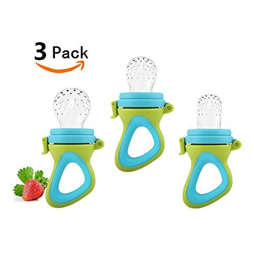 Baby Fresh Food Feeder 3パックフルーツFeedingシリコンニップルTeething Toys Aching Gumsおしゃぶりでほこりカバー、青緑色