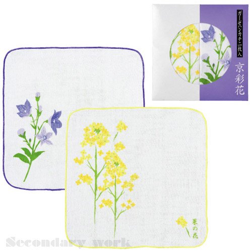 ガーゼハンカチ(京彩花)2枚入【まとめ売り】50個<2柄セット色柄指定不可>