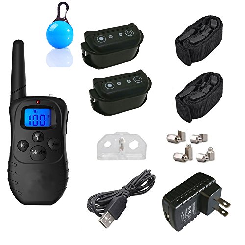【 2016年新しいバージョン 】Jason Yang犬の訓練首輪充電式と防水、ワイヤレス充電式効果的、無痛とビープ音、振動・青いバックライト画面安全振動トレーナーと 2 匹の犬、300 メートル (984 フィートで 330 ヤード) の慈悲深いペット トレーニング首輪振動首輪