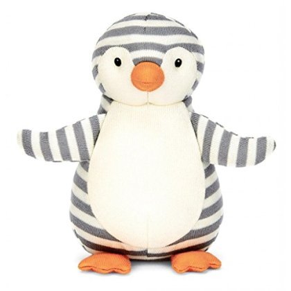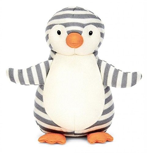 Brrr! It's chilly at the South Pole! Shiver Penguin is lucky to be made from finely knitted fabric. Looking splendid in grey and white, this candy-striped cutie loves to waddle through the winter. His beak is super-soft, as are his orange feet, and everyo