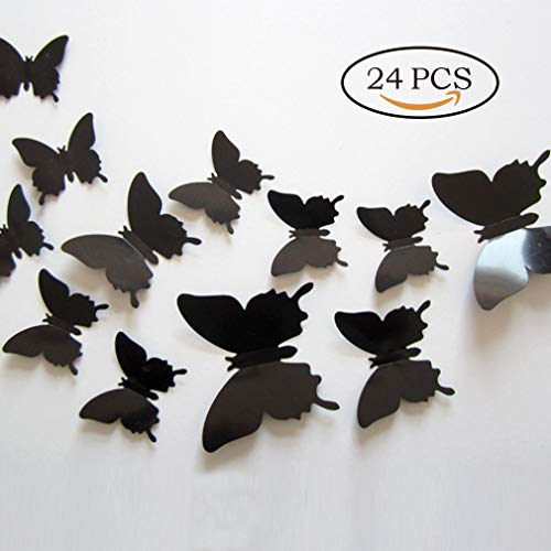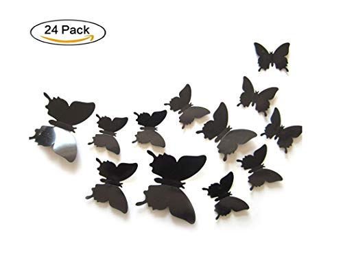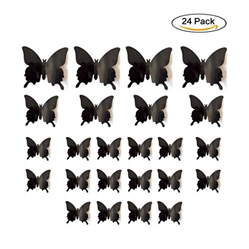 Jepple 24pcs 3dバタフライウォールステッカー – リムーバブル壁画、壁デカールホームデコレーション子供部屋寝室装飾リビングルーム装飾 24 ブラック