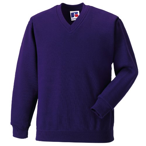 高品質子供用Vネックスウェット。学校用としても。肌触り柔らか。素材:リング精紡機で作られた上質の綿50%、ポリエステル50%。目安身長:3-4歳(104cm)、5-6歳(116cm)、7-8歳(128cm)、9-10歳(140cm)、11-12歳(152cm)。実寸サイズ(胸囲/着丈cm):3-4歳(72/45)、5-6歳(76/49)、7-8歳(82/54)、9-10歳(86/57)、11-12歳(92/62)。