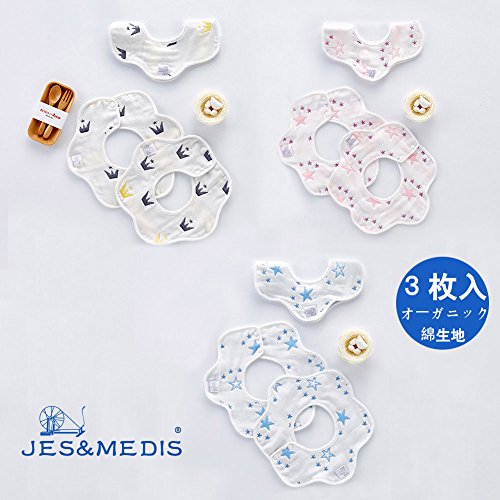 Jes&Medis ベビー ビブ よだれかけ スタイ 食事 エプロン 6層ガーゼ 出産祝い プレゼント 3枚入
