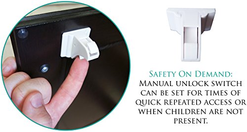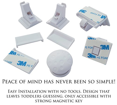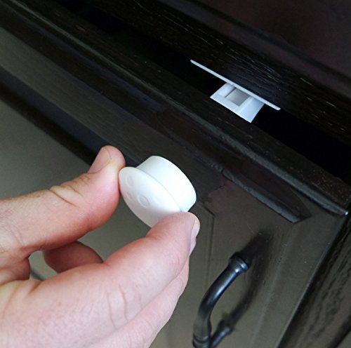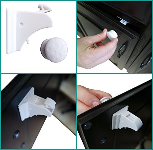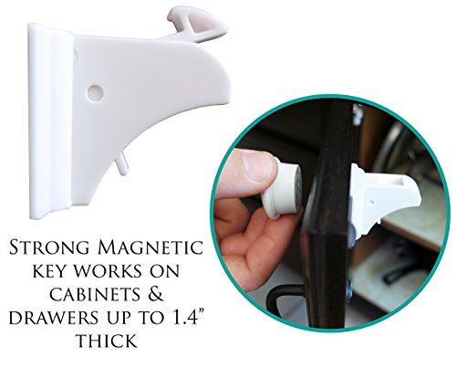 - CONCEALED & SECURE: Being completely concealed, your baby has nothing to unlock. Super strong magnetic key allows for 1 handed adult access and works on cabinets up to 1.4" thick.