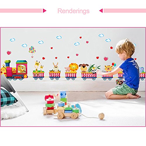 壁装飾、動物列車テーマ、保育園寝室リビングコーナーベースボード簡単ピール&スティック壁アートステッカーby jiazugo