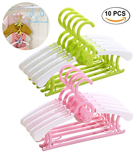 ベビーハンガー 子供用 ハンガー 赤ちゃん 10本セット 子供伸縮式洗濯用 新生児から大人まで 多機能 (グリーン, ピンク)
