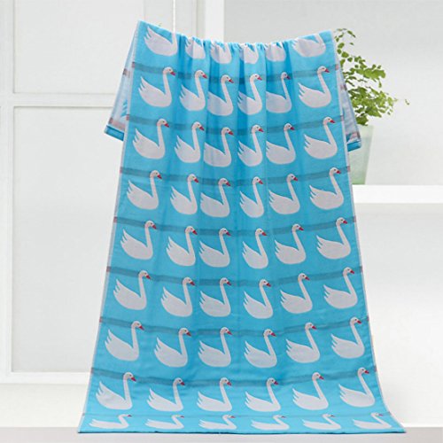 JINALV 肌にやさしい 子供 毛布 ベビーブランケット 大判 ひざ掛け ガーゼタオル 子供バスタオル ベビーケット 湯上りタオル ふわふわ タオル 赤ちゃん 70*140cm (白鳥-ブルー)
