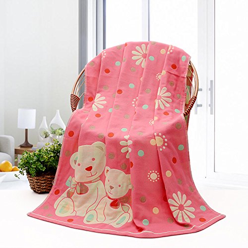 JINALV 肌にやさしい 子供 毛布 ベビーブランケット 大判 ひざ掛け ガーゼタオル 子供バスタオル ベビーケット 湯上りタオル ふわふわ タオル 赤ちゃん 70*140cm (熊-ピンク)