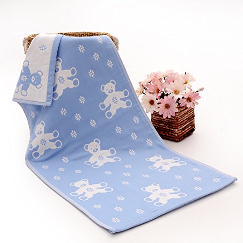 JINALV 肌にやさしい 子供 毛布 ベビーブランケット 大判 ひざ掛け ガーゼタオル 子供バスタオル ベビーケット 湯上りタオル ふわふわ タオル 赤ちゃん 70*140cm (熊-ブルー)