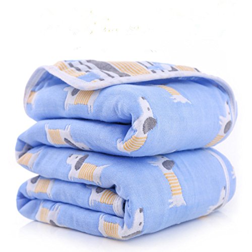 JINALV 6重ガーゼ 肌にやさしい 子供 毛布 ベビーブランケット 大判 ひざ掛け ガーゼタオル 子供バスタオル ベビーケット 湯上りタオル ふわふわ タオル 赤ちゃん 70*140cm (犬-ブルー)