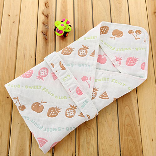 8重ガーゼ おくるみ スワドル オーガニックコットン 出産祝いに 便利な帯付き 85×85cm (ピンク果物)