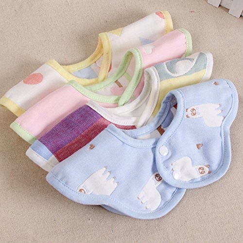 Seliyi ビブ 女の子 スタイ 食事 エプロン 360°回転 6枚セット 綿 防水 4層厚さ クロス付け 6枚セット