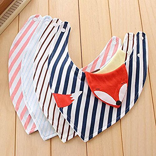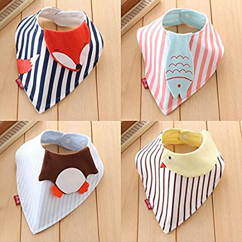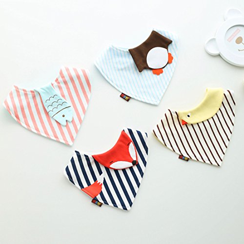 JINALV ベビー 動物の形 三角スタイ 三角バンダナ オシャレな ビブ スタイ コットン100% 柔らかい スナップ 4枚セット