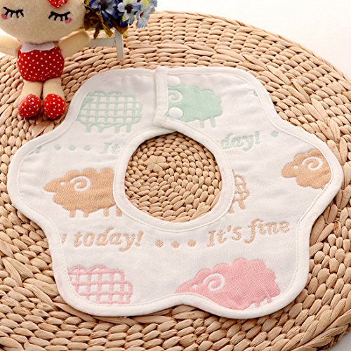 JINALV スタイ ビブ よだれかけ コットン100% 柔らかい スナップ 4枚セット 6重ガーゼ (羊)
