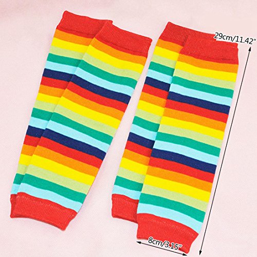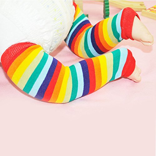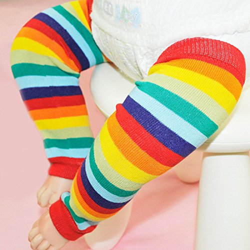[Jiyaru]レッグウォーマー ベビー 3足セット 膝カバー レギンス スパッツ トレンカ 新生児 防寒 冷房対策 ボーダー 虹