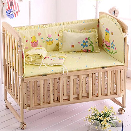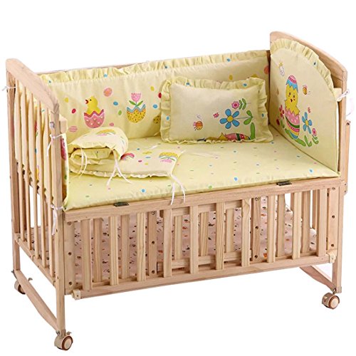 [Jiyaru]ベッドバンパー5点セット 洗えるミニベッドガードパット 全周タイプ 柔らかく快適 イエロー S