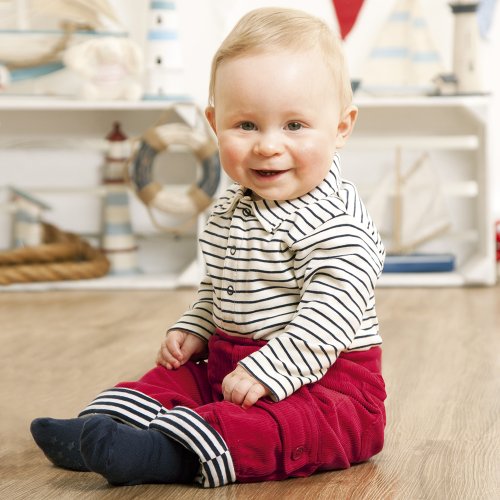 JoJo Maman Bebeジョジョママンベベ(イギリス)/Breton Poloshirt Body ブレトンポロシャツボディ/3-6m (68cm)/レッドストライプ/B2189ERS36