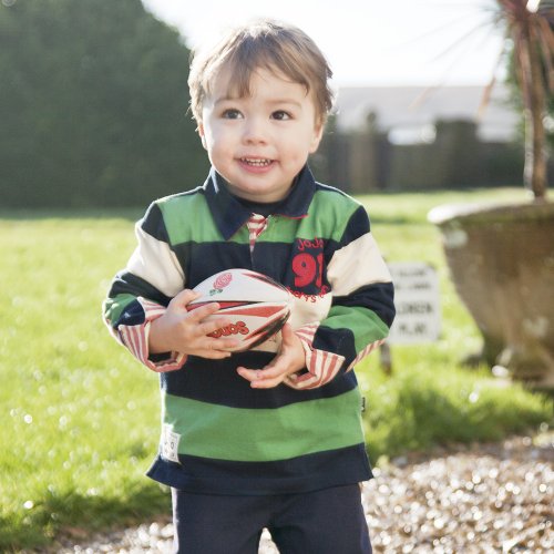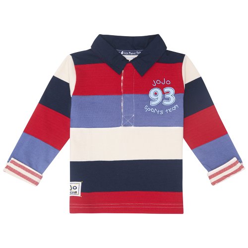 JoJo Maman Bebeジョジョママンベベ(イギリス)/Multi Stripe Rugby Top マルチストライプラグビートップ/12-18m (84cm)/レッドマルチストライプ/B8774RED1218