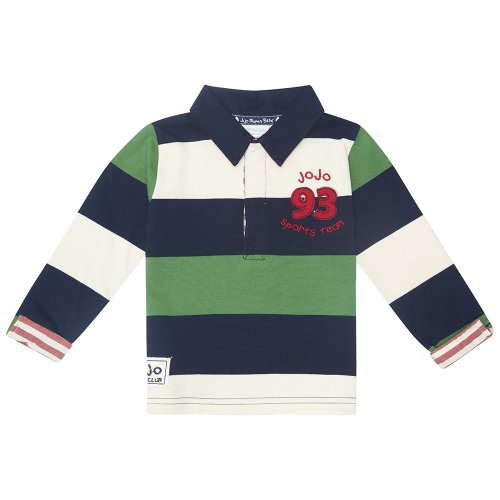 JoJo Maman Bebeジョジョママンベベ(イギリス)/Multi Stripe Rugby Top マルチストライプラグビートップ/12-18m (84cm)/グリーンマルチストライプ/B8775FOR1218