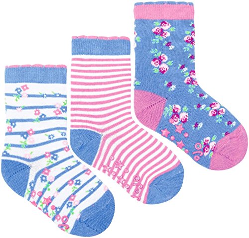 - かわいい靴下3 - Packとかわいい花のデザイン。滑りにくいプリントソールは、足と定位置デザインが特徴