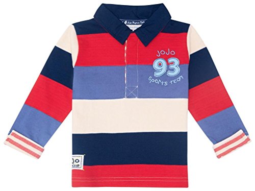 JOJO Maman Bebeスマートストライプラグビートップベビー – レッド長袖スタイル楽しいアップリケ付き。機能が導入されています。洗濯することがスマート長袖スタイルにコントラストの襟、前立てや袖口Plusのアップリケのバッジのモチーフ。当社のベストセラーのあるチームコードのズボンの実用的なまだスマートな衣装。40度で洗濯機使用可