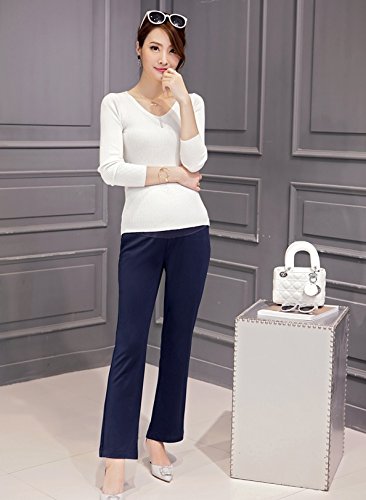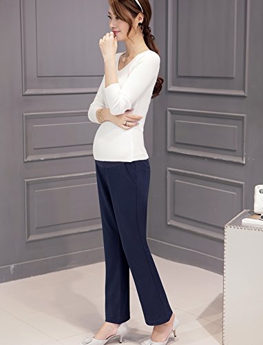 Jocolate(ジョコレート) レディース マタニティ チノパン ストレッチ パンツ ボトムス 妊婦 ウェア ウエスト調節 (XL, ブルー)