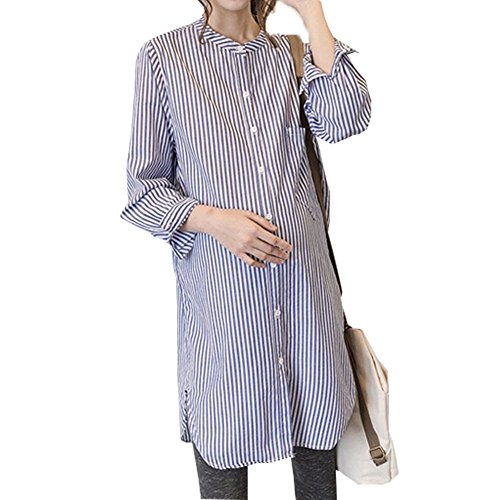 Jocolate(ジョコレート) レディース マタニティ シャツ ワンピース ストライプ柄 長袖 ゆったり 膝丈