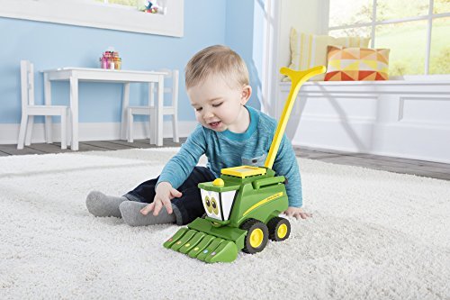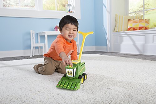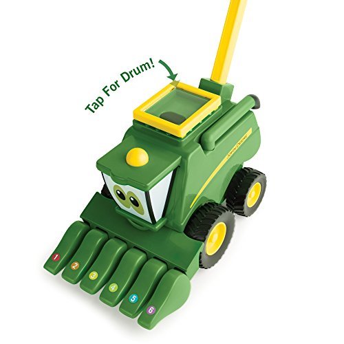 John Deere Musical Corey features multiple toys in one for hours of interactive play! This musical push along toy will delight your toddler! Push Corey along and hear the mechanical music, or play the "header" keys similar to a piano! "Drum" on the hopper top and "Ratchet" the auger to make your own unique melodies!