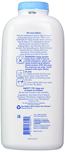 - Johnson's Baby Powder, Pure Cornstarch, Aloe & Vitamin E, 22 Ounce (Pack of 2)