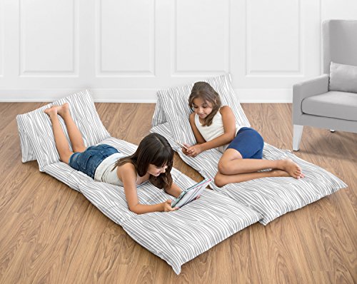 Sweet Jojo Designsグレーとホワイト木目印刷子供ティーン床枕ケースLoungerクッションカバー(枕は含まれません