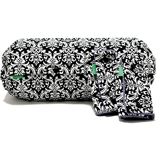 acortile 抱っこひも収納カバー L よだれパッドセット 日本製 【ダマスク×ブラック】 90日保証 リバーシブル 裏生地ブラック シッカリ生地 ★エルゴアダプト・ベビービョルン収納可能なLサイズ★