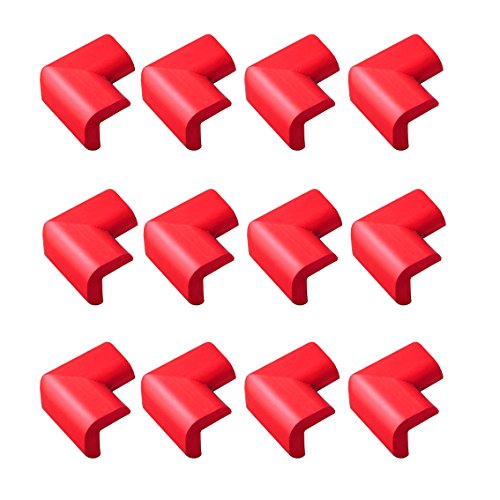 Jolieer 超弾力 コーナークッション ケガ防止 両面テープ付き コーナーガード 赤ちゃん ガード ー 12パック (L型厚手(角), 赤)