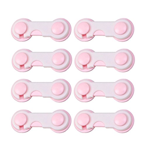 Jolieer 赤ちゃんのイタズラ防止 ベビー ドアロック / ストッパー 安全を守る キッチン 食器棚 など 簡単取り付け ケガ予防 ワンタッチ 回転式 (ピンク 8個)