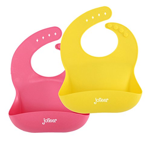 Jolieer 食事用エプロン ロールアップビブ スタイ お食事 離乳食 (赤+イエロー)