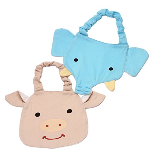 Jolieer ベビー 動物の形 スタイ オシャレな ビブ スタイ 綿100% 2枚セット ベビー 祝い プレゼント 男の子 女の子(子豚の小さな象)