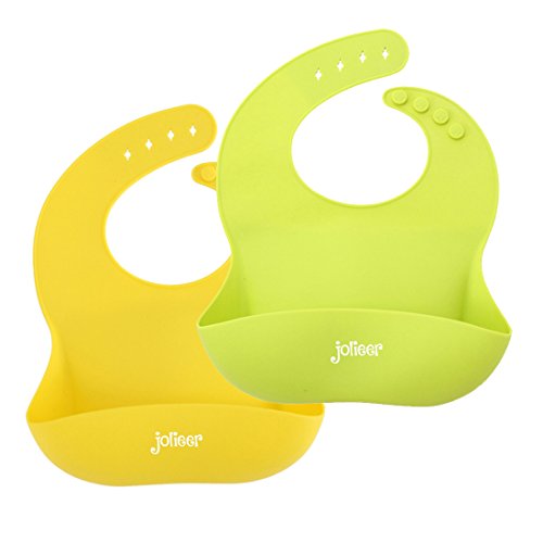 Jolieer 食事用エプロン ロールアップビブ スタイ お食事 離乳食 (イエロー+グリーン)