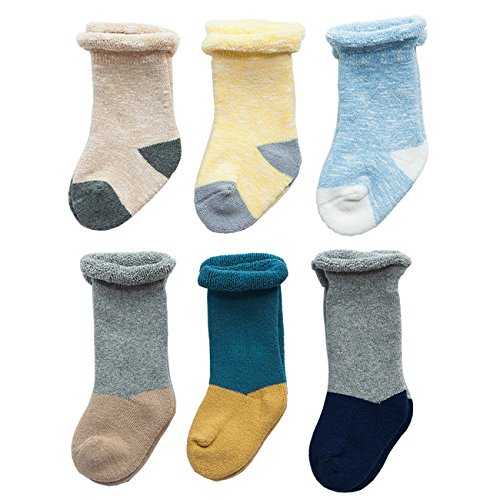 Jolieer 赤ちゃん 子供靴下 靴下セット くつした セット かわいい シンプルデザイン 3足セット短い+3足セット長い (1歳~3歳(14cm), 男の子)